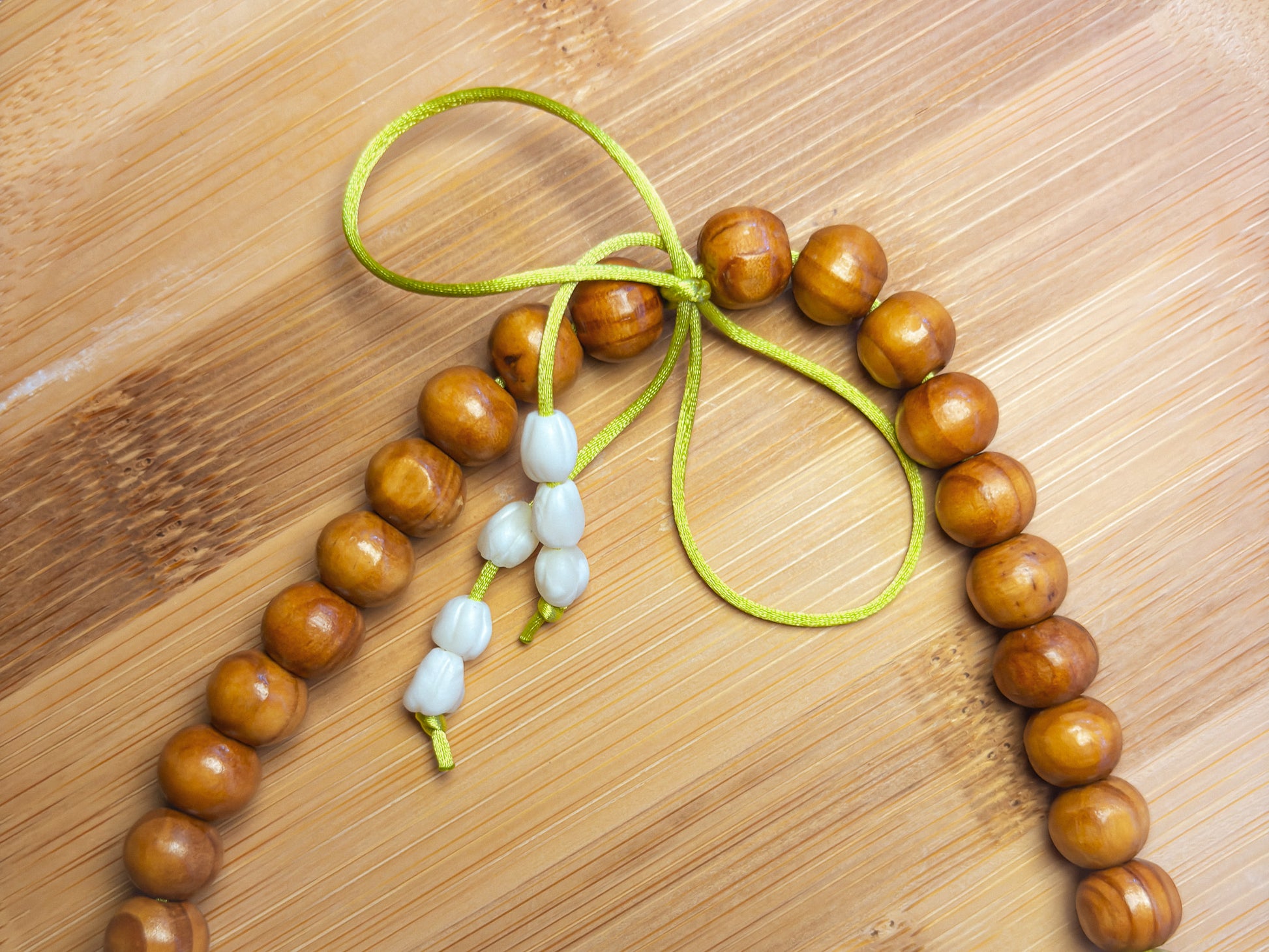All flower beads are handmade, meant to be similar to life-size, with 4mm~ scandal wood beads.