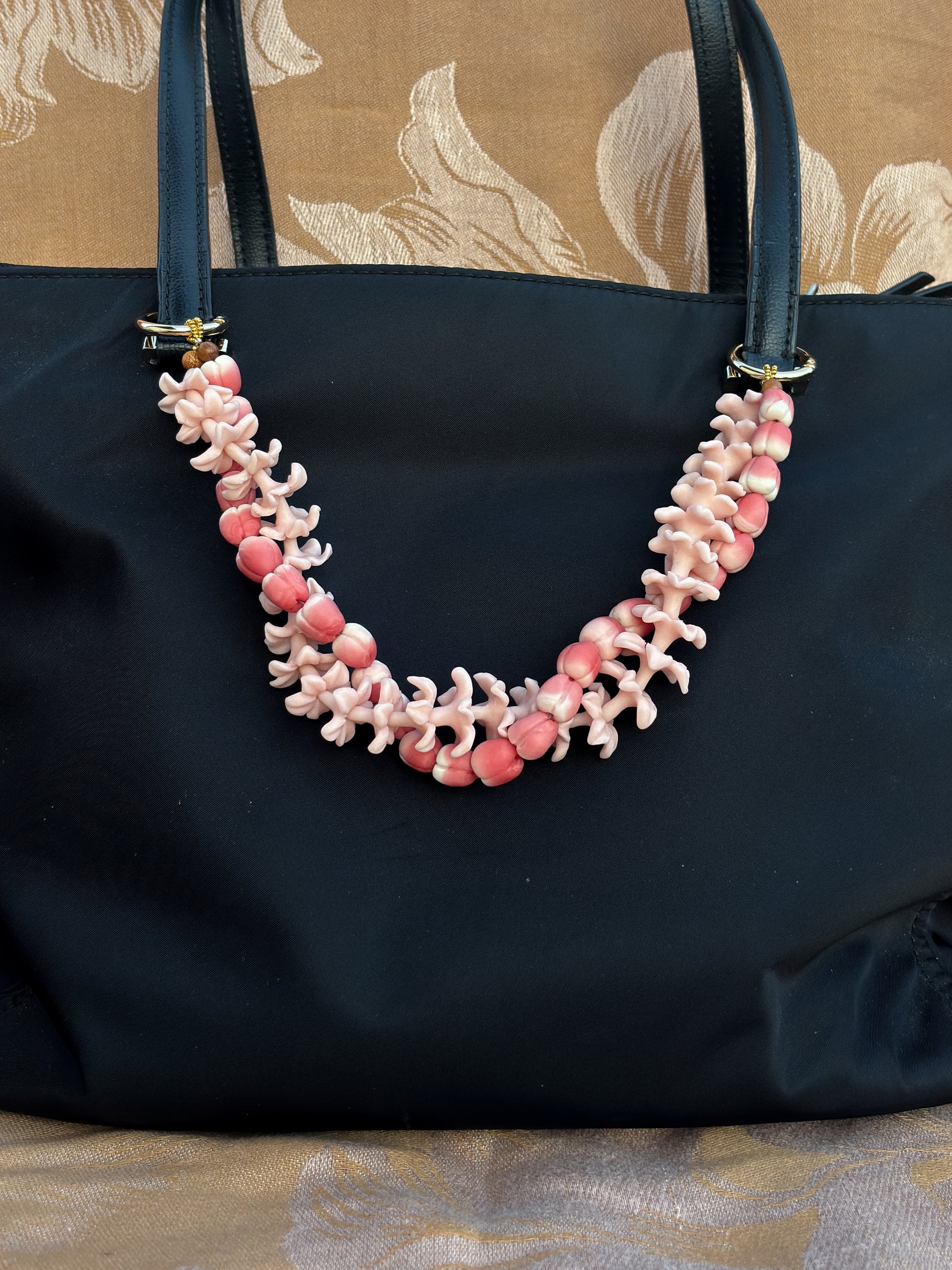 Take a soft tape ruler or piece of string to approximate where the bag lei will be hung from. These measurements don't include the carabiners, please accommodate how much you'd like it to hang!