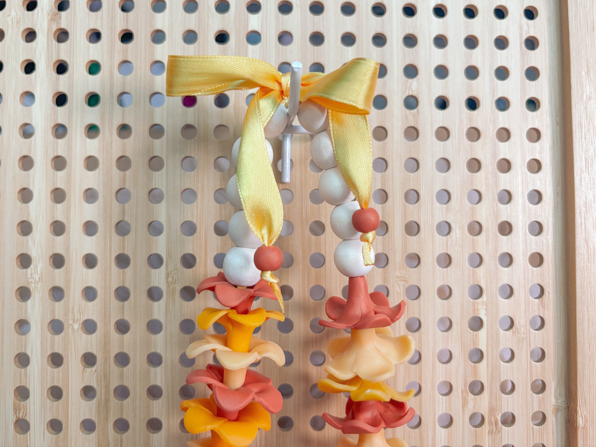 All Puakenikeni beads are handmade, meant to be similar to life-size, with 12mm~ scandal wood beads. With an infinity knot to adjust length.